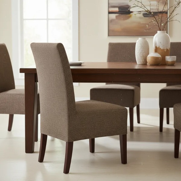 Renová tus sillas con fundas confeccionadas a medida, en tela Lino Antidesgarro, una opción resistente, elegante y de textura natural.